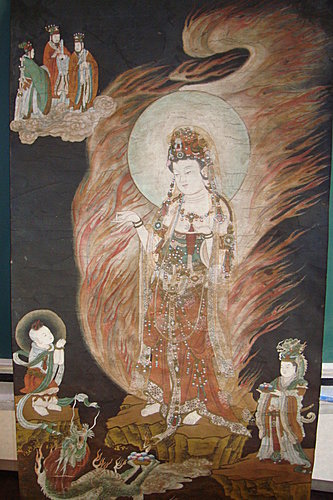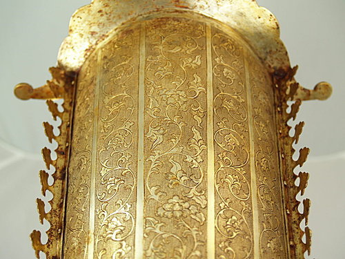 | 1987年5月5日,考古人员走进法门寺地宫的后室,进行我国佛教史上最重要的探古工作。一套八件以不同质料铸造、流金溢彩的古盒,层层相套地摆放在地室的正中央,盒盖为一尊鎏金菩萨像,两侧各立一名石雕护法天王,另有四个银瓶分立后室四角,各类朝廷供奉器物以佛教密宗的格局围绕着古盒而布放,古盒的重要性不言而喻。果然,里面载着的就是佛教世界千百年来奉为传世稀宝的释迦牟尼指骨舍利。 虽然后来考古人员在后室的秘龛内找到真身的佛指舍利(灵骨),证实八重宝函内的是影骨,但八重宝函的珍贵性毋庸置疑。 这枚佛指舍利被发现时,正是农历四月初八佛诞日的凌晨一时,如此巧合,不禁令人啧啧称奇。 据古籍记载,我国有史以来第一次迎奉佛骨盛典,是在唐高宗显庆四年,唐高宗为使佛教更符中国的传统习俗及臻于中国化,为舍利铸造金棺银椁(即宝函),并按中国儒家的最高礼仪埋葬于黄土之下(即地宫)。李氏皇朝迎奉佛骨,队仪庄严浩大,沿途顶礼膜拜者由长安延至凤翔三百余里,成为一时盛况。佛指舍利及八重宝函在湮没千年后出土,重新唤起人们对史籍上这段佛教韵事的记忆,勾起人们对大唐盛世的追思。 八重宝函的最外一重,是一个三十厘米立方的银棱盝顶檀香木宝函,由于是檀香木所造,难抵年月侵蚀,发现时已朽腐残破,仅余下的盒壁四周,有释迦牟尼说法图、阿弥陀佛净土图及礼佛图等描金加彩浮雕。 第七重宝函以银铸成,四壁以平雕刀法刻有“护世四大天王”像,顶面有行龙两条,为流云所围。四天王形象栩栩如生,持弓执箭,极其威严,使人肃然而敬。 第六重宝函为素面盝顶银宝函,是八个宝函中最特别的一个,宝函通体素净,不加丝毫雕刻绘描而浑然生辉,出土时有绛黄色绫带封系。 第五重:鎏金如来说法盝顶银宝函钣金成形,纹饰鎏金。函件正面有如来,四周有两菩萨、四弟子、二金刚力士、二供奉童子,外壁凿有如来及观音画像,或饰以双凤翔,配以蔓草纹,或刻上金刚沙弥合什礼佛的图景,造型逼真而细腻。 第四重:六臂观音纯金盝顶宝函。函盖雕有双凤及莲蓬,盖侧有瑞鸟四只绕着中心追逐,正面为六臂如意轮观音图,左侧为药师如来图,右侧为阿弥陀佛图,背面为大日如来图,外壁凿有如来及观音画像。 第三重宝函为金筐宝钿珍珠装纯金宝函。 第二重宝函是金筐宝钿珍珠装珷玞石宝函。通体以珍珠、宝石嵌饰,并雕上花瓣图案,极其华丽精美。与第三重宝信不同之处,是前者以金铸成,后者则以珷玞石磨制而成。 第一重宝函即佛指舍利所藏立之所———宝珠顶单檐四门纯金塔,塔顶为宝珠型,四面檐角翘起,阁额及檐下均饰菱纹。塔四面开门,门周布鱼子纹,门下部有象征性飞梯至塔座,小巧玲珑,金碧辉煌。塔座中立一小银柱,用以套置佛指舍利。 八重宝函精雕细琢,美不胜收,但它的价值,不仅在平雕刀法、宝钿珍珠装及盝顶这些古代工艺,还在于刻凿在四周壁面上的文殊、如来造型,正是佛教密宗内蕴的深刻表现,是密宗文化艺术史的一幅剪影 |